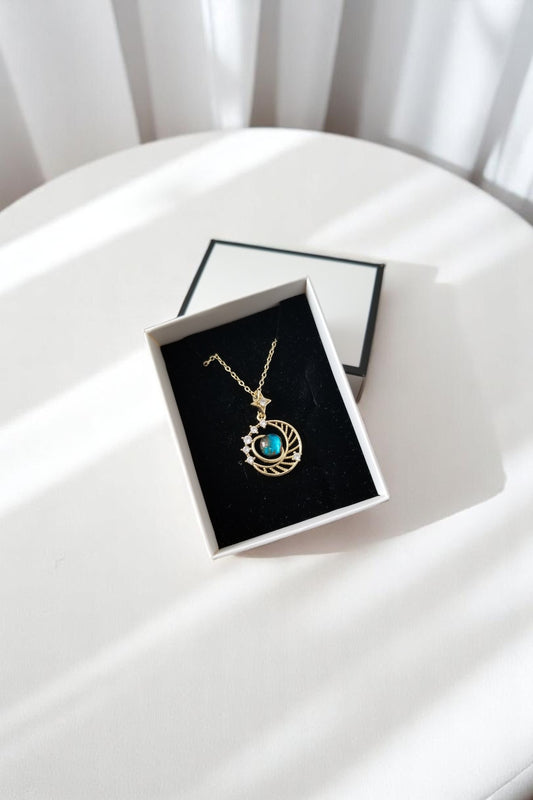 Taşlı Gezegen Gökyüzü Altın Renk Kolye Kutulu Kararmaz Zincir 45 CM