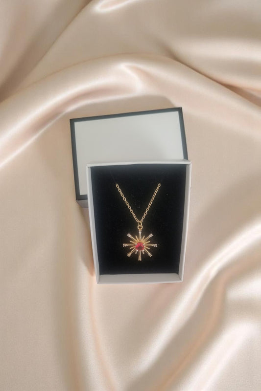Altın Renk Yıldız Tasarımlı Kırmızı Taşlı Kadın Kolye 45CM Kararmaz Zincirli, Şık ve Kutulu