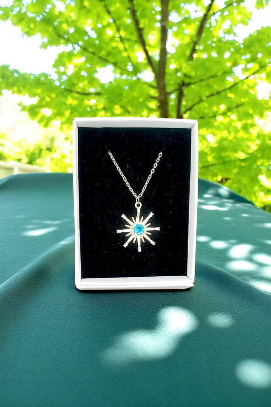 Altın Renk Zincirli Yıldız Tasarımlı Turkuaz Taşlı Kadın Kolye Şık Kutulu 45CM