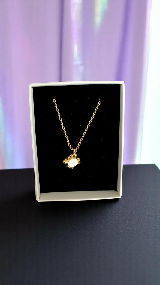 Altın Renk Zincirli Beyaz Desenli Yengeç Tasarımlı Kadın Kolye Kutulu Takı 45CM