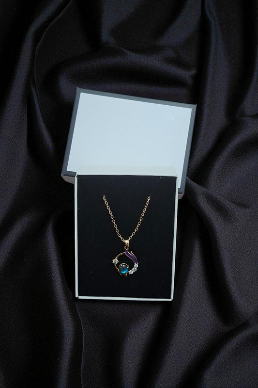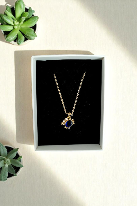 Lacivert Yengeç Figürlü Altın Renk Zincirli Kadın Kolye Şık Kutulu Takı
