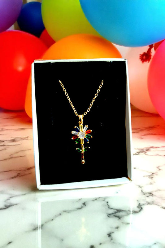 Çiçek Desenli Altın Renk Kadın Kolye Taş Boncuk 4 Renkli Zarif Tasarım Kararmaz Zincir Kutulu