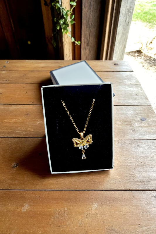 Taşlı Kelebek Figürlü Altın Renk Kadın Kolye Zarif Desenli Tasarım Kararmaz Zincir Kutulu Takı